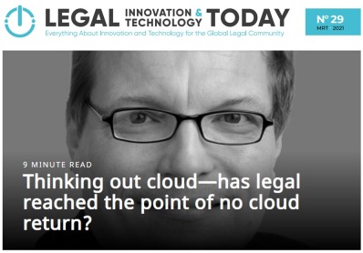 InsideLegal’s Jobst Elster, who originated Legal Management Magazine‘s “Thinking Out Cloud” recurring column on all things legal cloud, once again has his head in the cloud’s with his recent feature in Legal I(nnovation)&T(echnology) Today. Legal I(nnovation)&T(echnology) Today is a must-read publication covering legaltech and legal innovation and is available for free online here. You can also access past issues here.