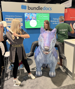 Another ILTACON newbie, who I spent considerable time with throughout the week was Cork, Ireland based Bundledocs offering cloud-based document bundling/binding and PDF editing. A mere startup four years ago, but already a market leader back home and throughout the UK and EMEA, their ILTACON team was led by CEO Brian Kenneally, marketing director Lisa Walsh, business development exec Aisling Murphy, and legal tech veteran Peter Zver, responsible for exposure and growth in North America. In fact, I was beyond thrilled when Peter reached out to me several months back to tell me he was starting a new chapter, after much success with Tikit (later Advanced), to get back to his ‘start-up’ and entrepreneurial roots and assume the role of vp of operations with a focus on growing the Bundledocs brand and product in North America. When they were not meeting attendees, networking with partners, and making introductions with the media assembled onsite, the Bundledocs team premiered Ireland’s original superhero Cú Chulainn as part of Monday night’s exhibit hall opening reception.
