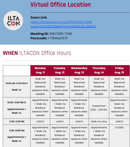 In fact, the ILTA Pulse team isn’t playing. As of Monday morning (August 11), they’ll be manning a virtual office throughout ILTACON week to answer any submission questions, explain the submission process and how content will be featured, and give you the confidence to start publishing your ILTACON content almost as soon as it happens. If you don’t plan to just walk-in to chat about ILTACON on Pulse, you can contact Crystal Little, Editor of Content and Publications, or Franki Russell, Digital Content Coordinator, to schedule an appointment. Here are the hours for the office.