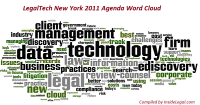 The word cloud was pulled from the agenda located at http://www.LegalTechShow.com.